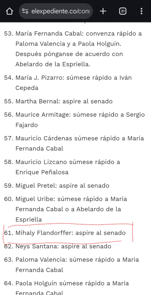 https://elexpediente.co/consejos-para-75-candidatos-presidenciales-para-el-2026/ Tremendo análisis que se hizo este analista, y ni se diga de nuestro el candidato Nº. 61. EL SENADO REQUIERE MEJOR NIVEL DEL QUE SE CONOCE HASTA EL MOMENTO. 🤔🫵👏👏👏